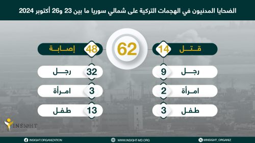 وأعدّ فريق الرصد والتوثيق بمنظمة إنسايت هذه الإحاطة بعد مقابلات واتصالات مع الضحايا وذويهم وشهادات ناشطين وإعلاميين محليين في المناطق التي استهدفتها الضربات التركية.