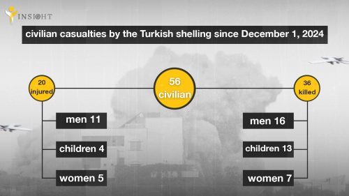 INSIGHT recorded an unprecedented rise in casualties during the first and second thirds of December, as Turkey killed 36 civilians by shelling, more than half this number was recorded in the past 11 months. This number underscore the need for the international community to take concrete steps to stop these crimes.